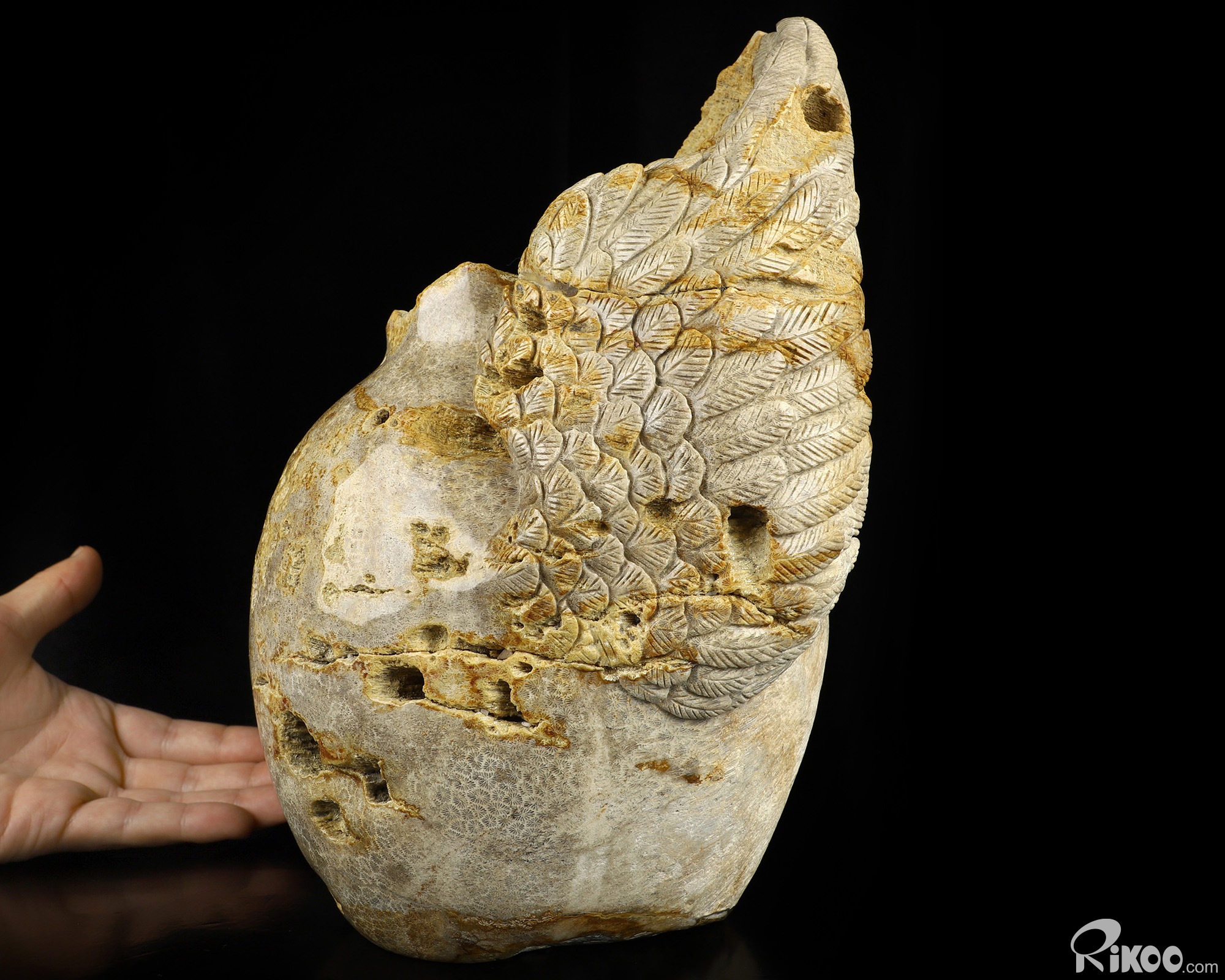 You are looking at a Coral Fossil sculpture. The sculpture is 10.8 inches long.