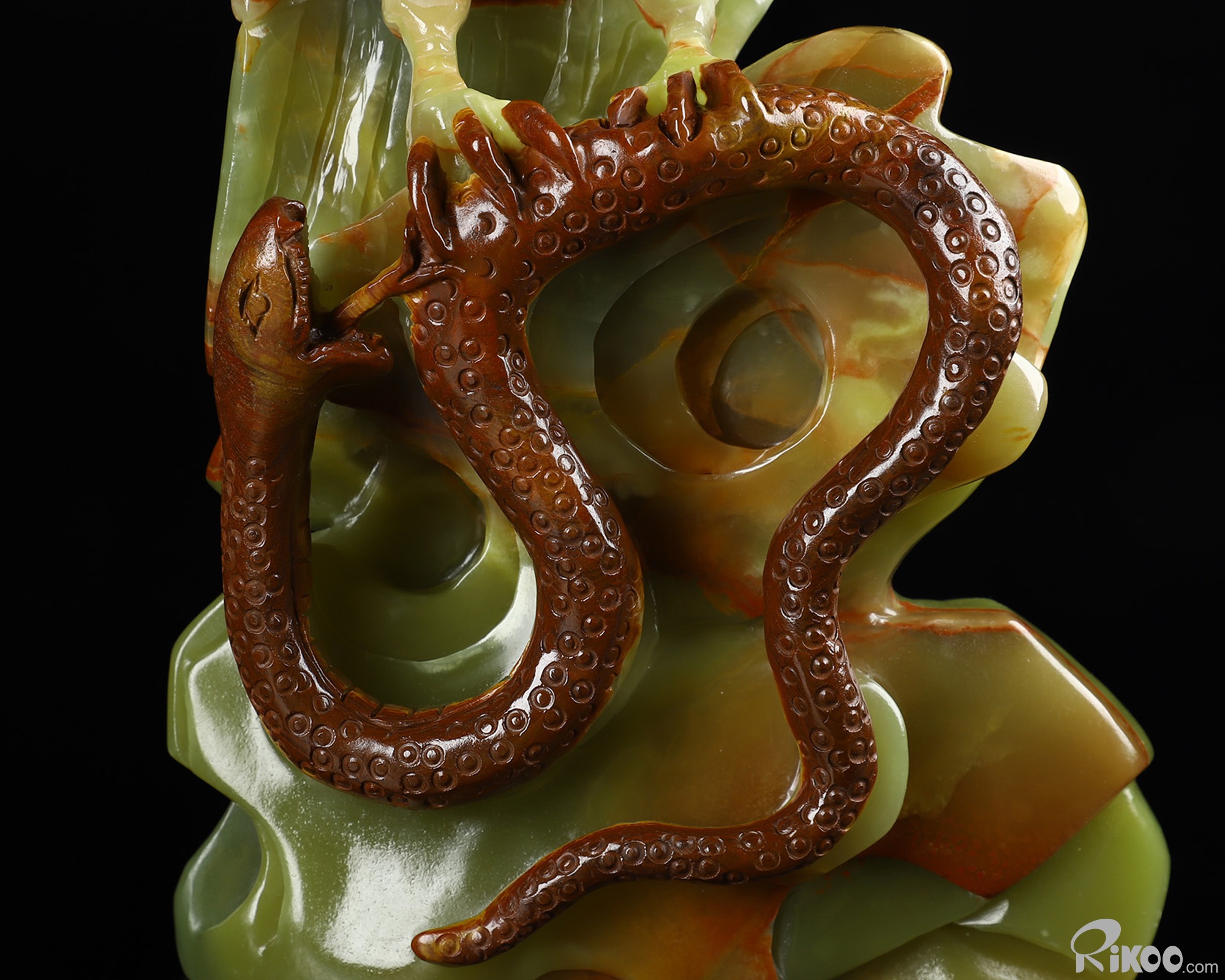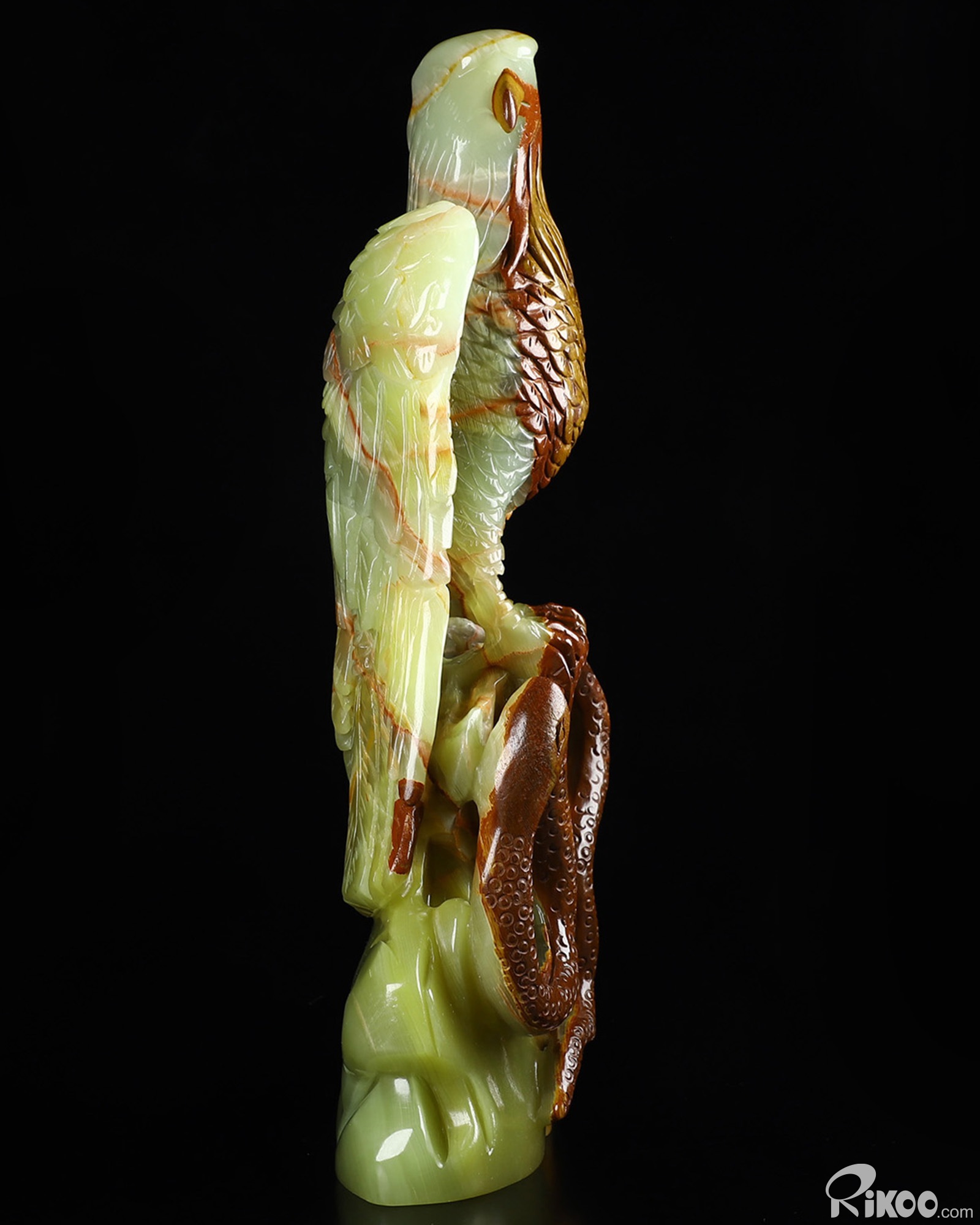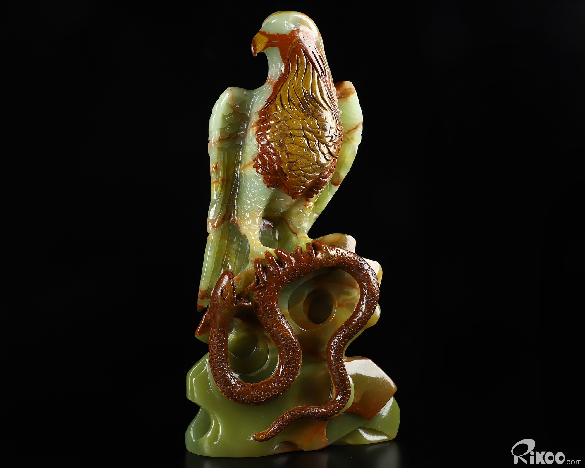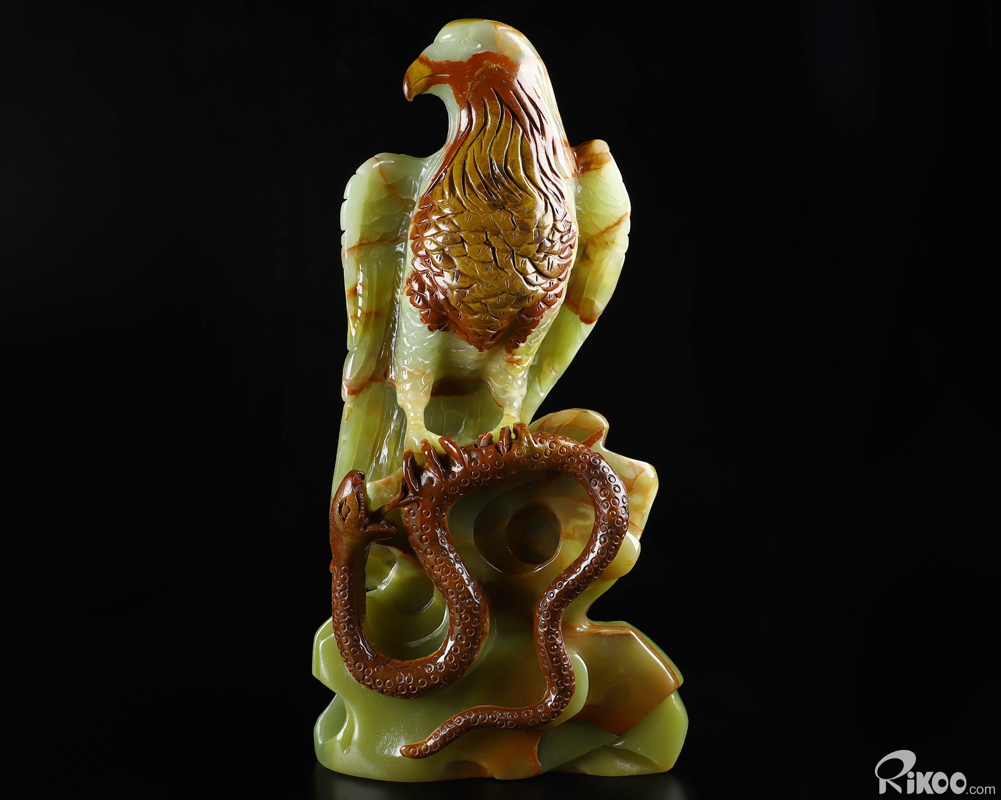 Titan 11.8" Afghanistan Jade Carved Crystal Eagle with Snake, Crystal Healing