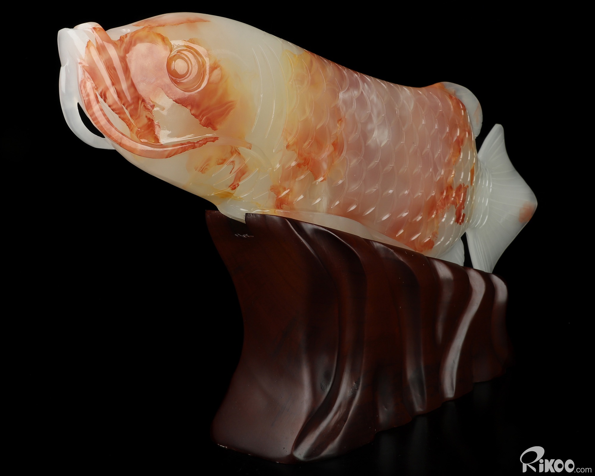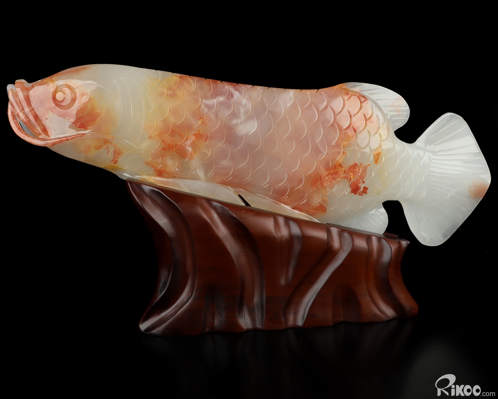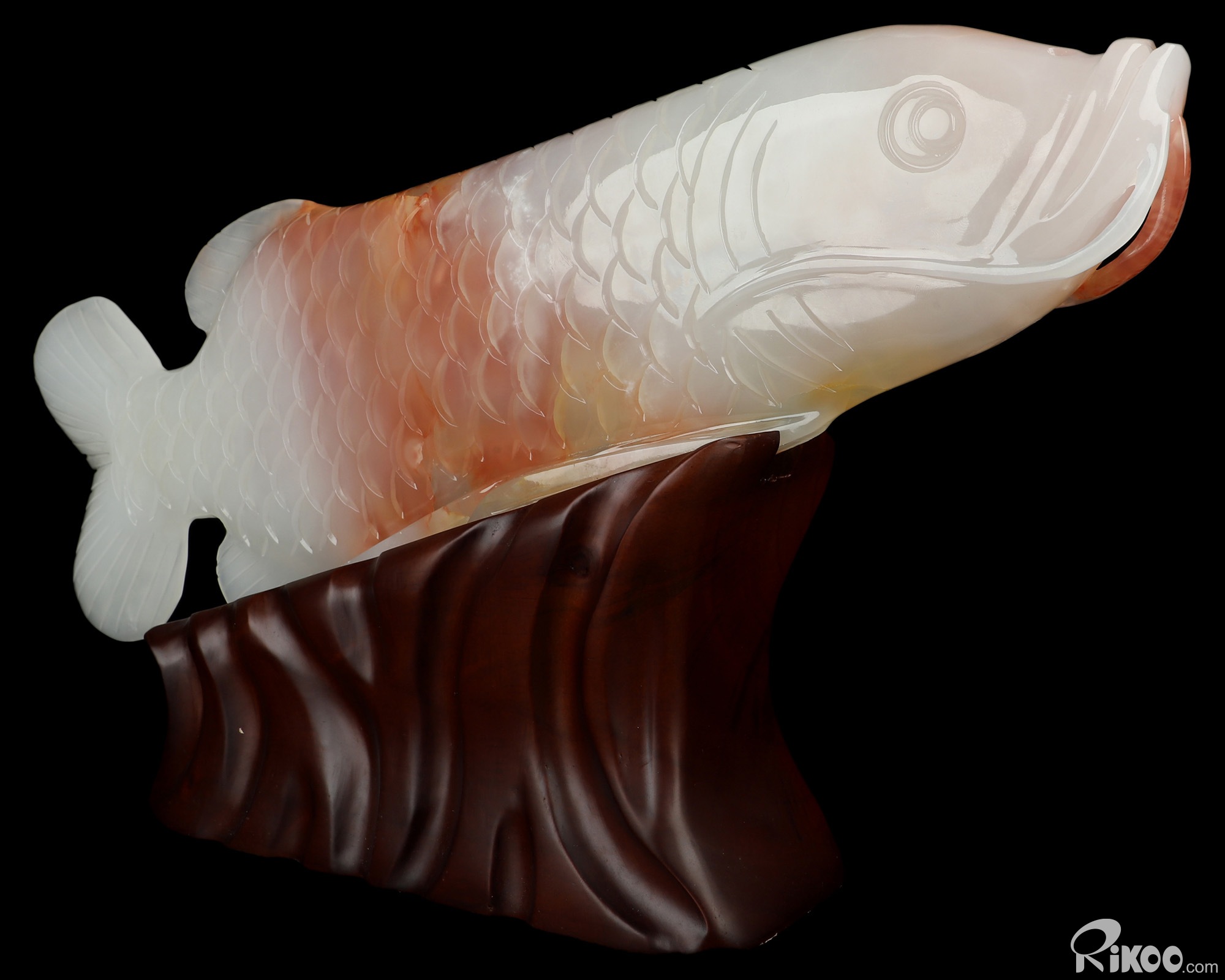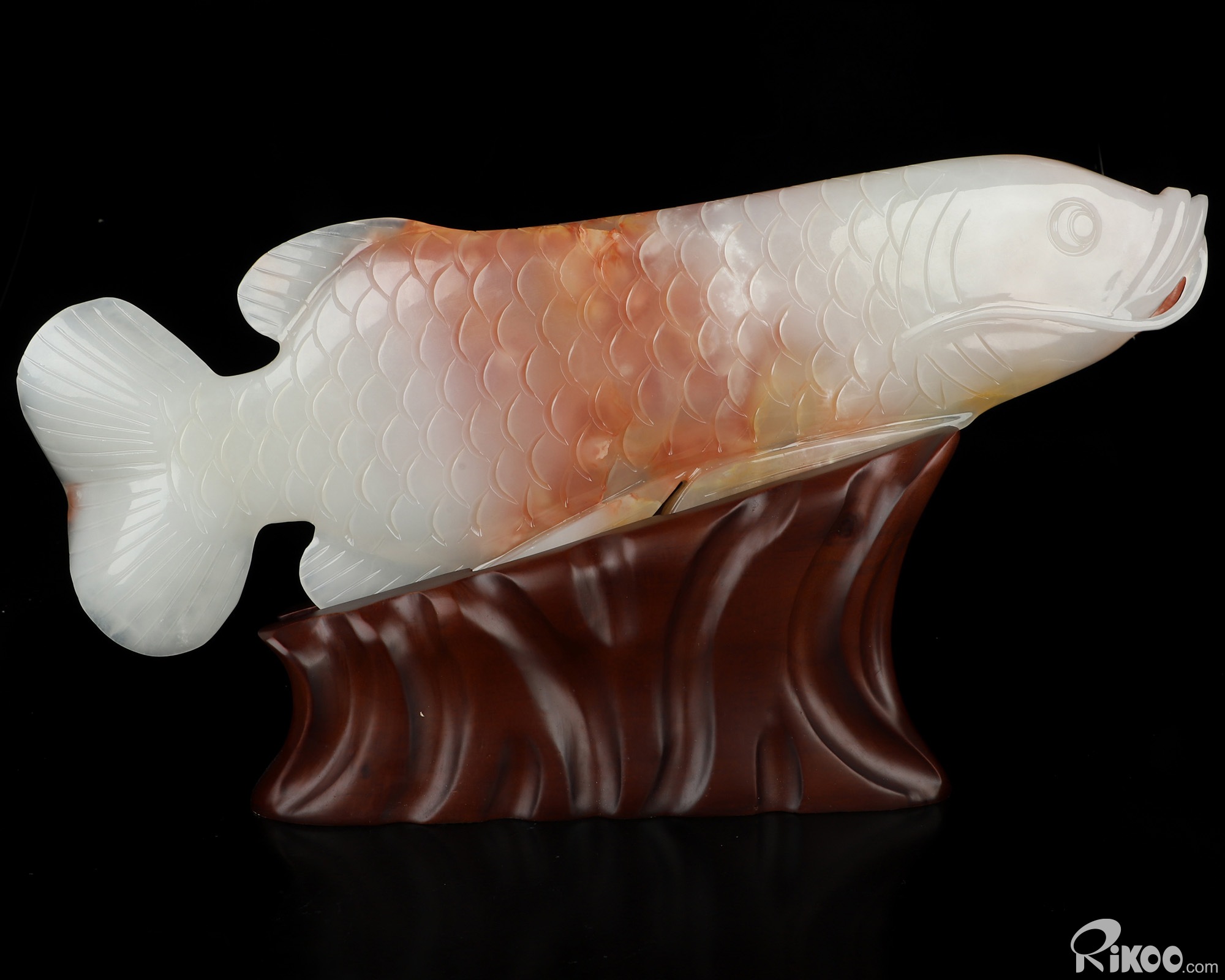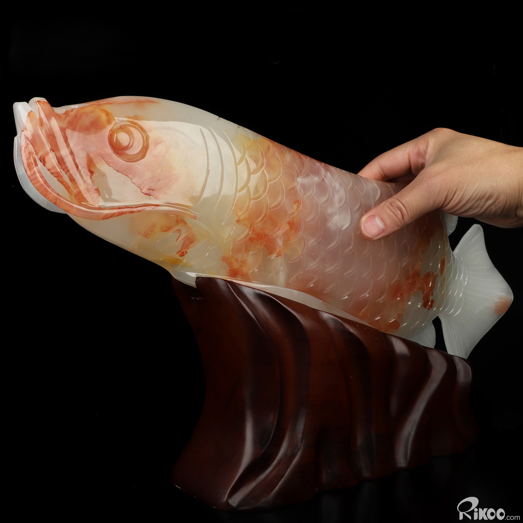 Titan 17.7" Afghanistan Jade Hand Carved Crystal Fish Sculpture, Crystal Healing