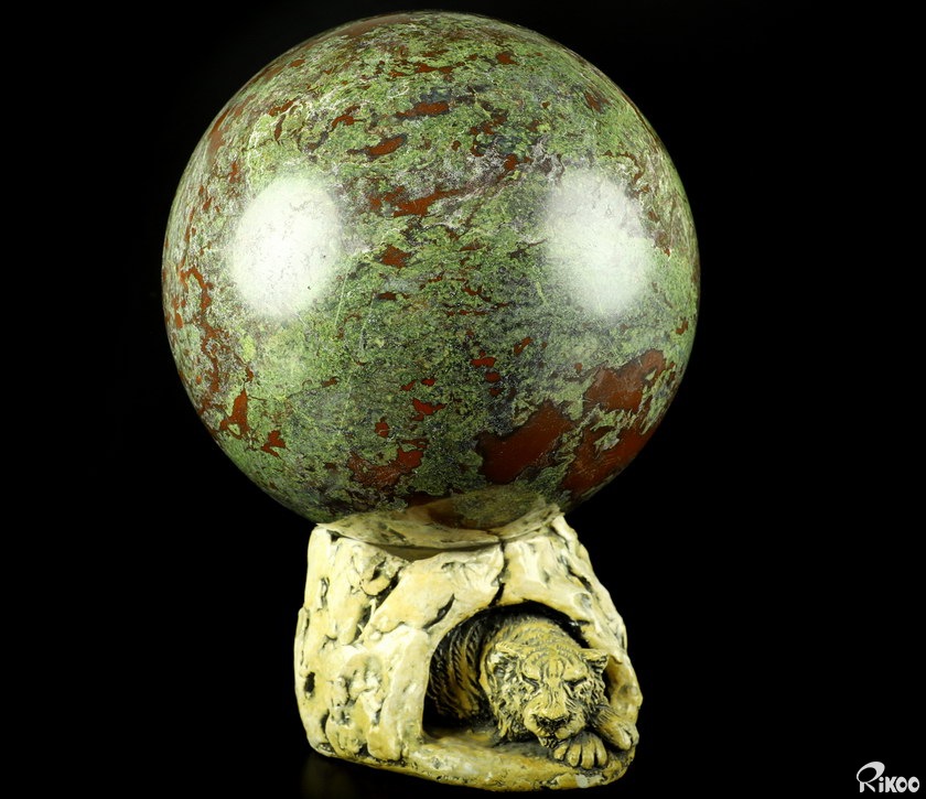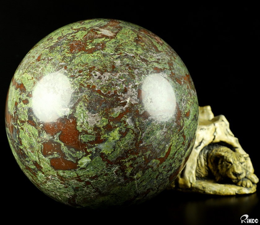 Giant 8.7" Dragon Blood Jasper Carved Crystal Sphere, Crystal Healing