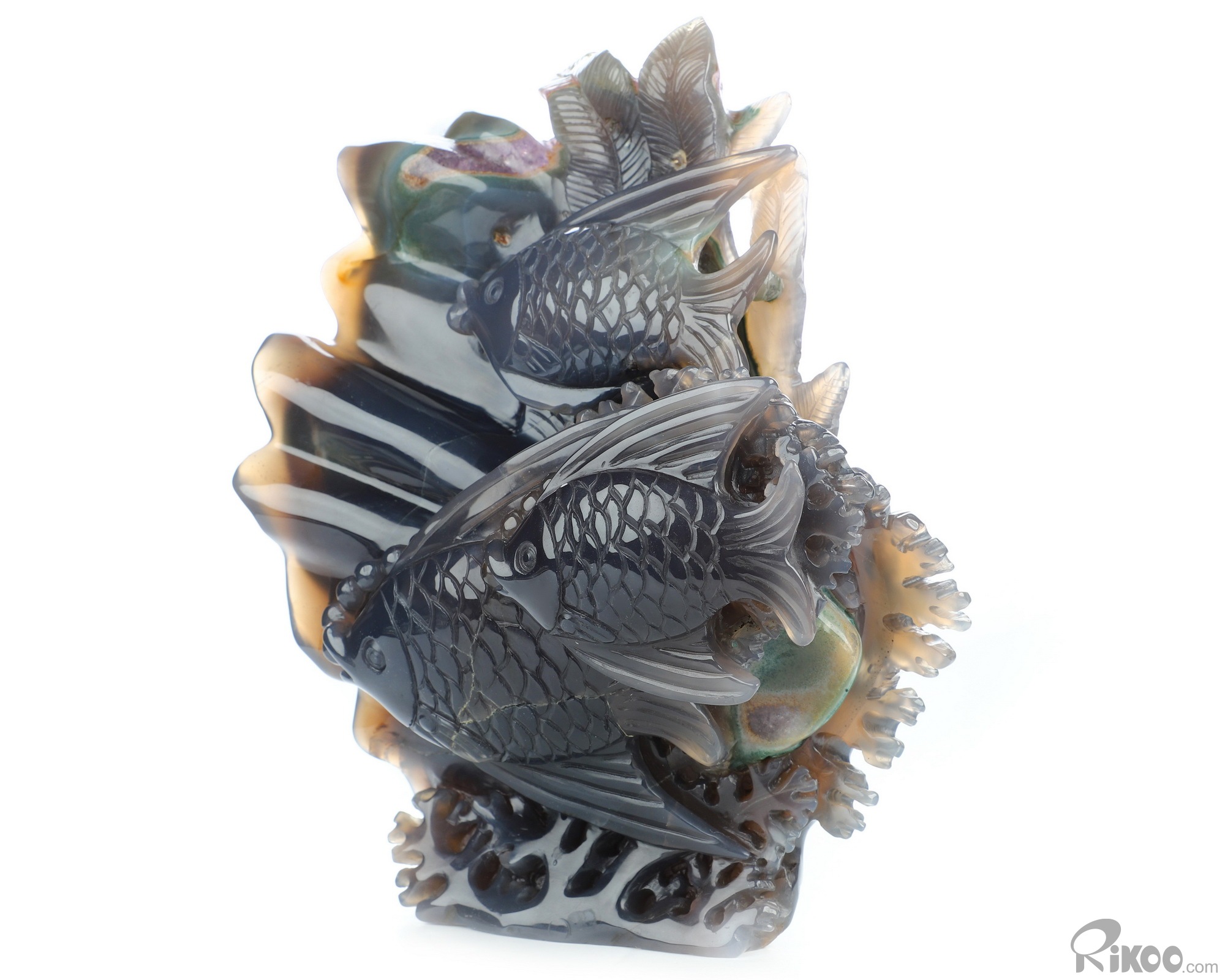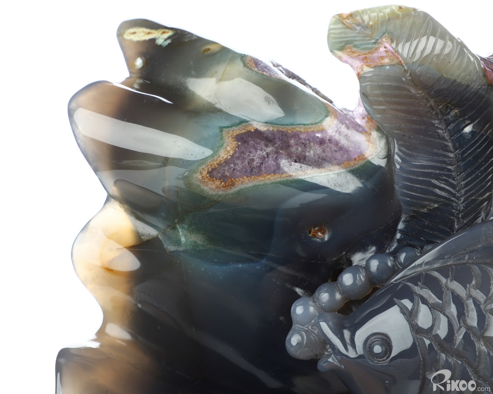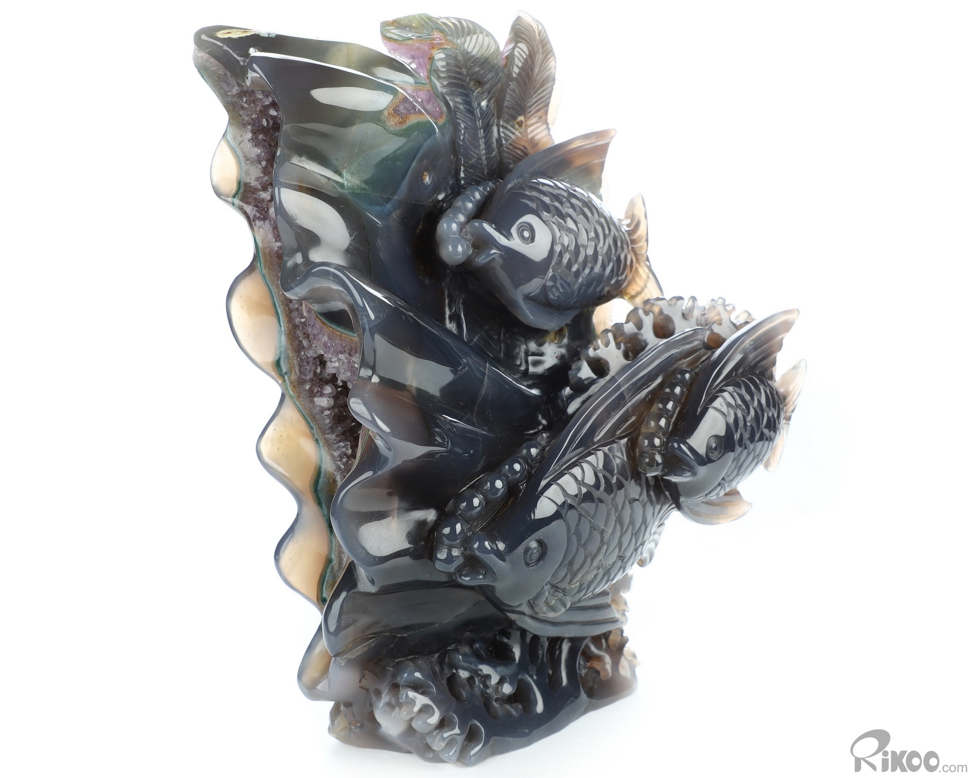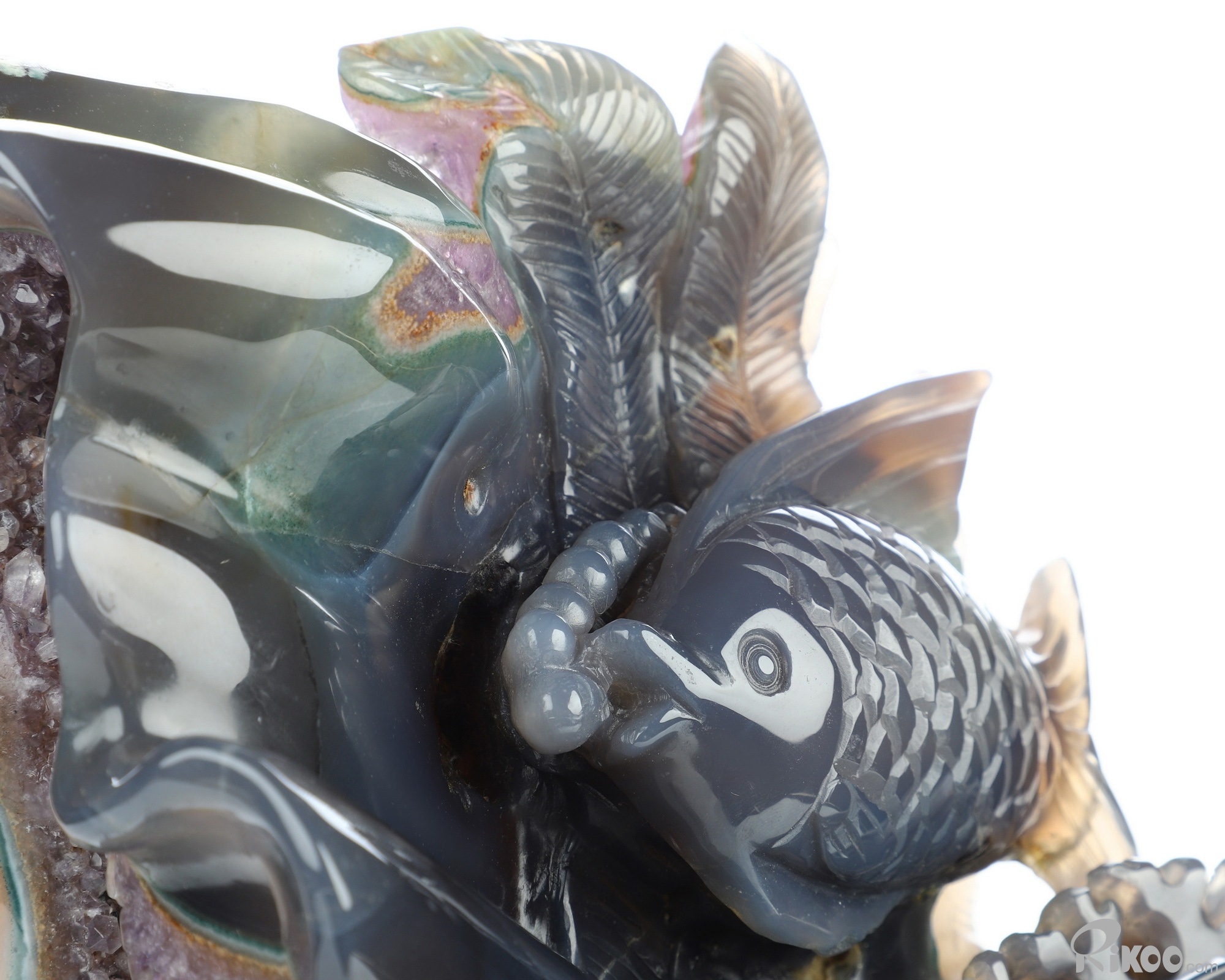 Titan 8.8" Agate Amethyst Geode Hand Carved Crystal Fish Sculpture, Crystal Healing