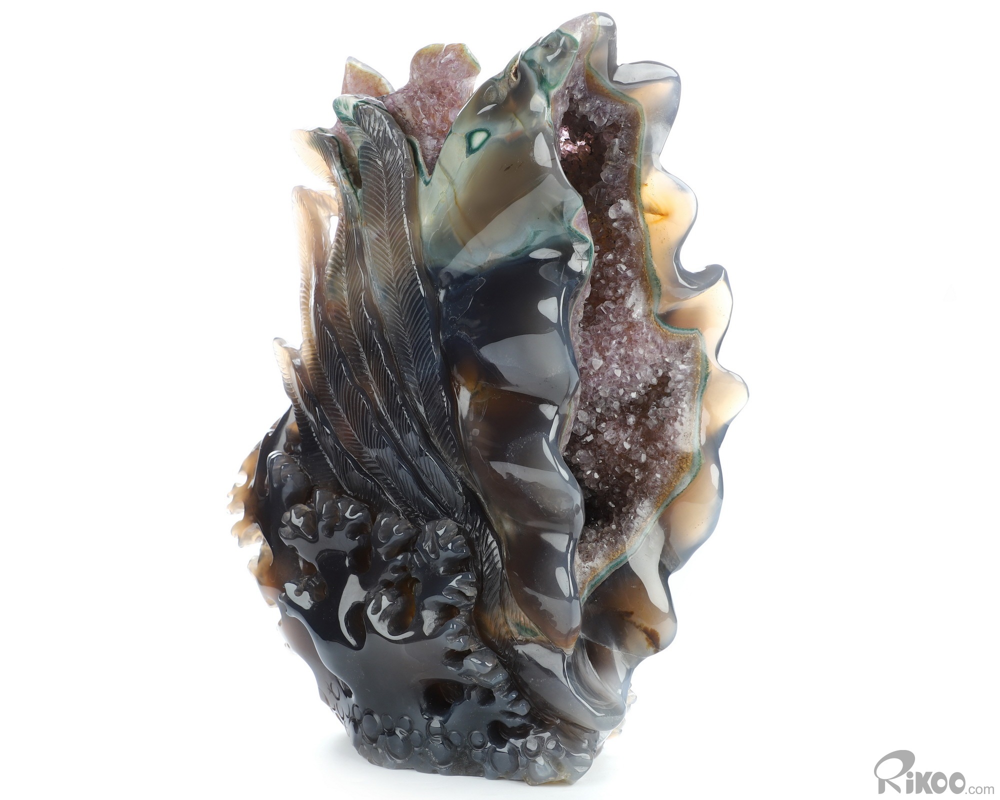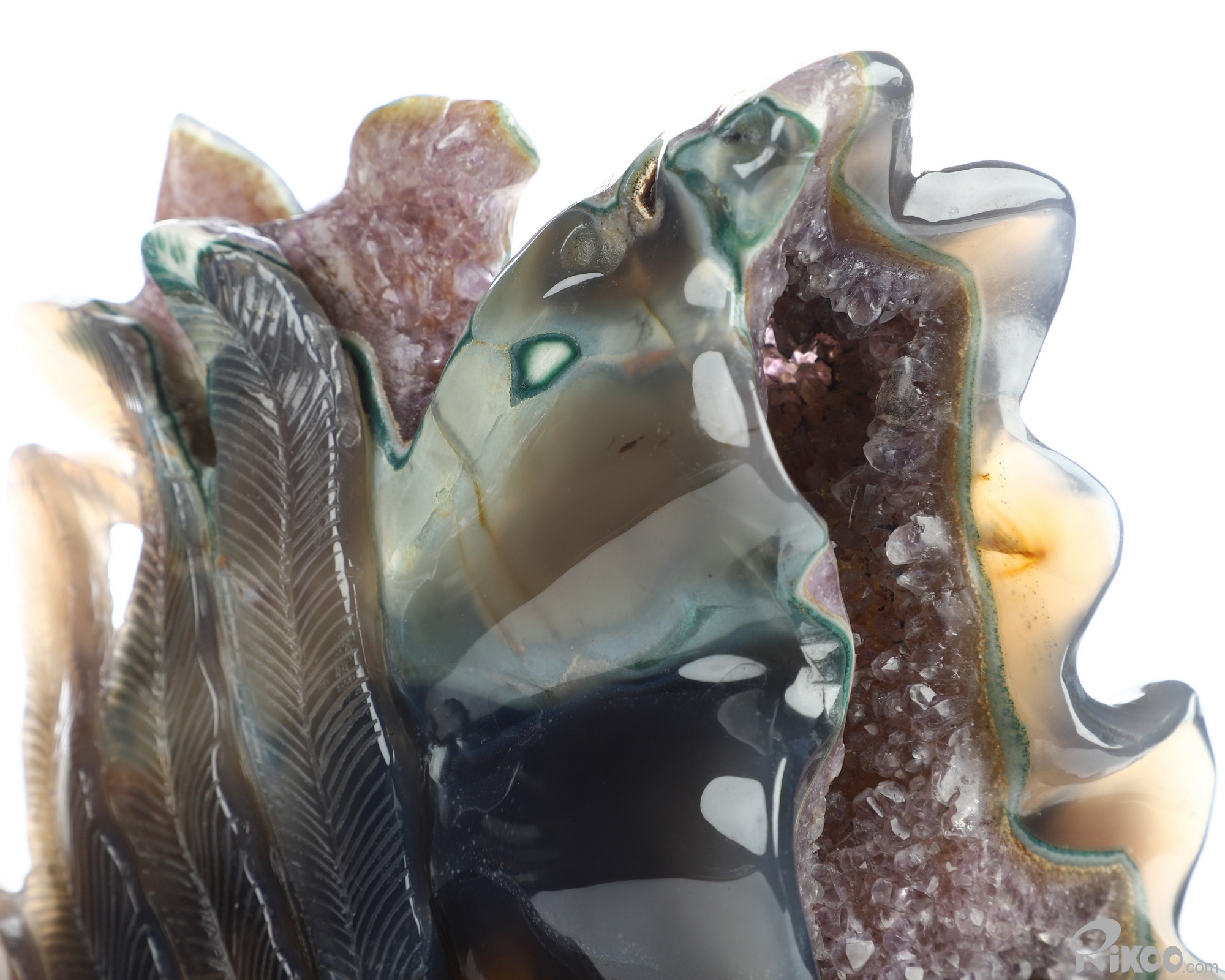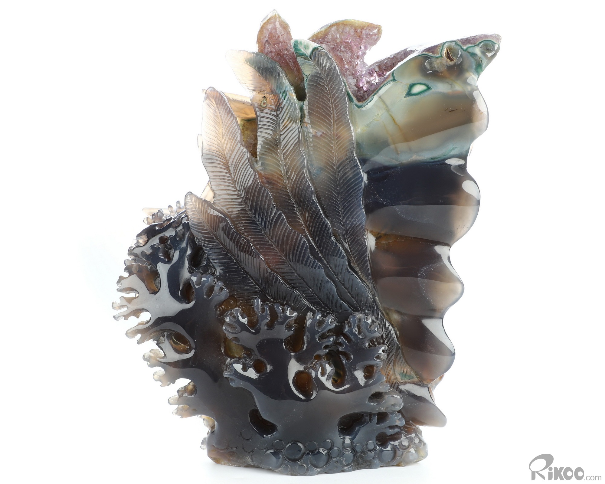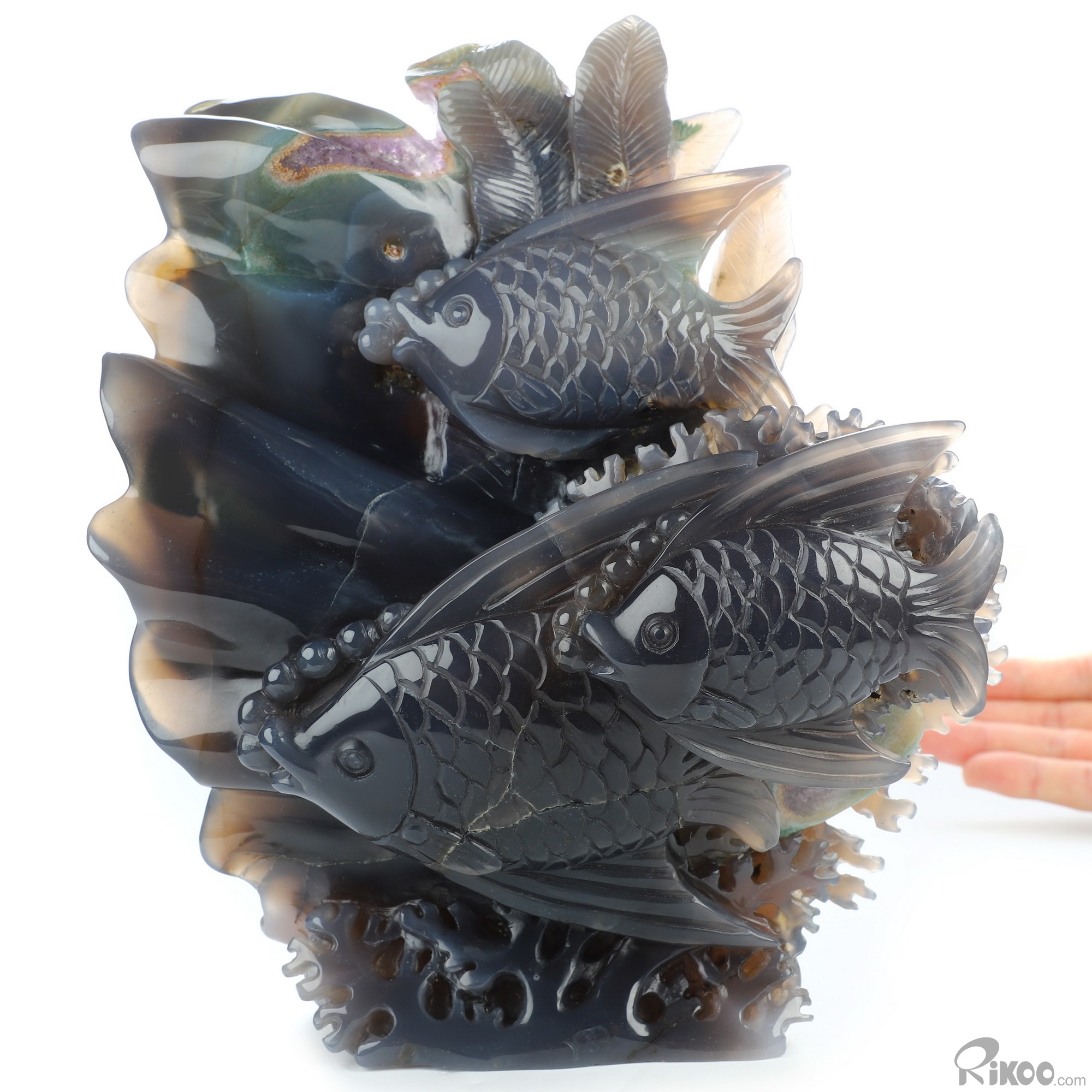 Titan 8.8" Agate Amethyst Geode Hand Carved Crystal Fish Sculpture, Crystal Healing