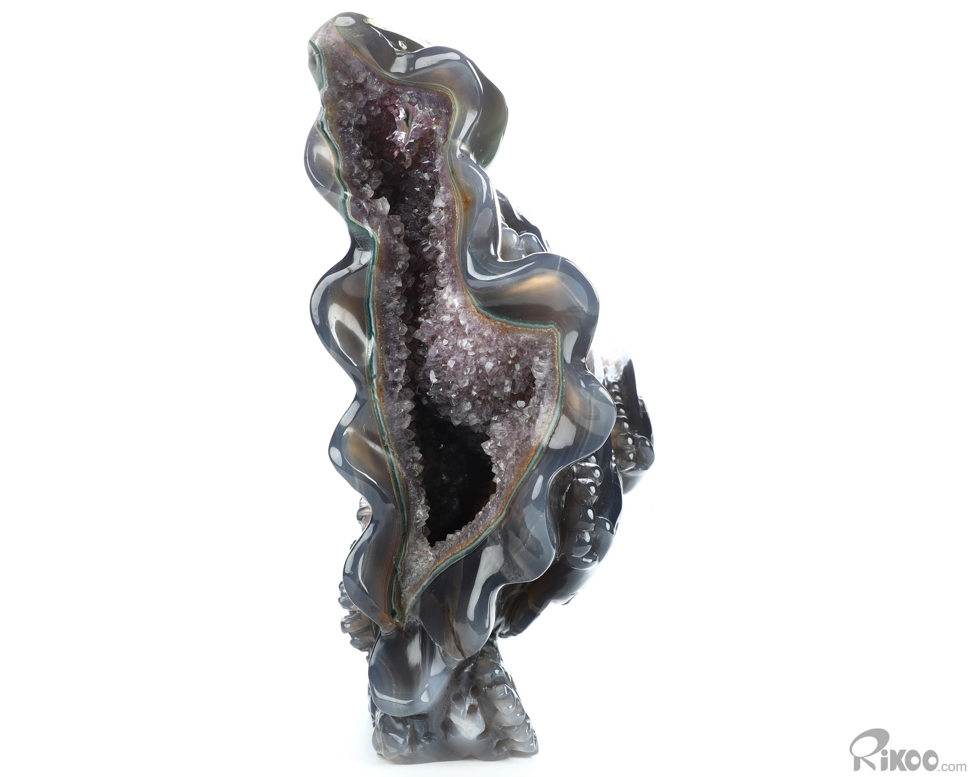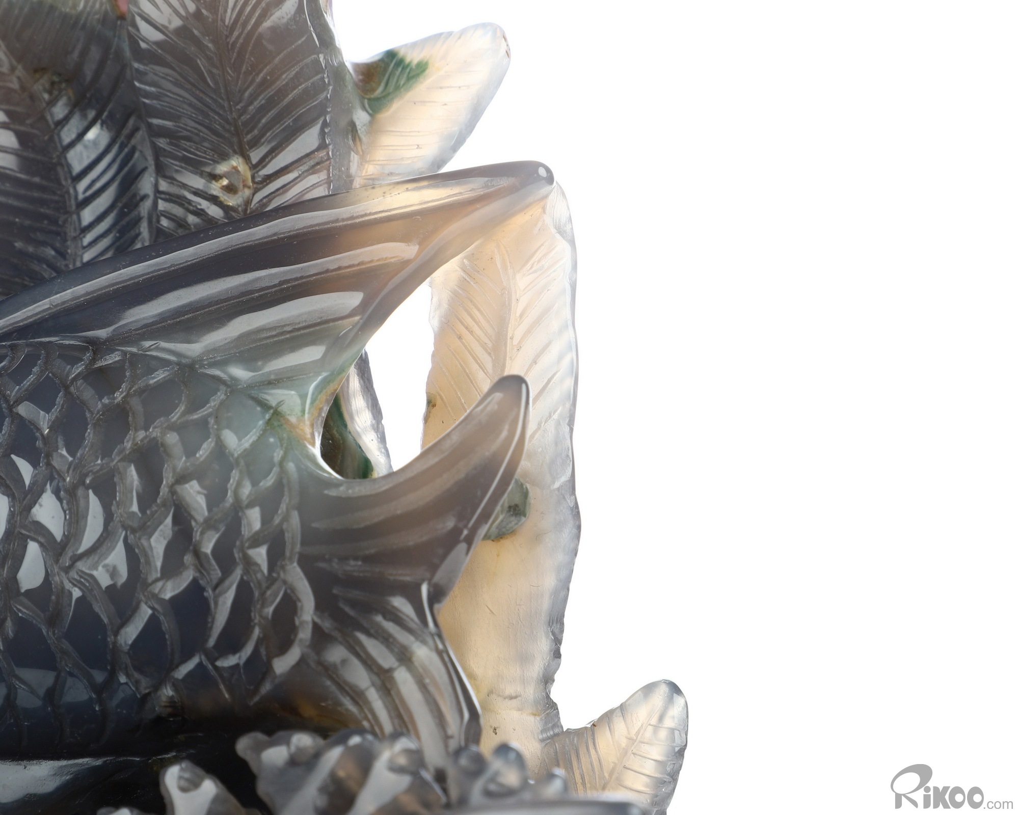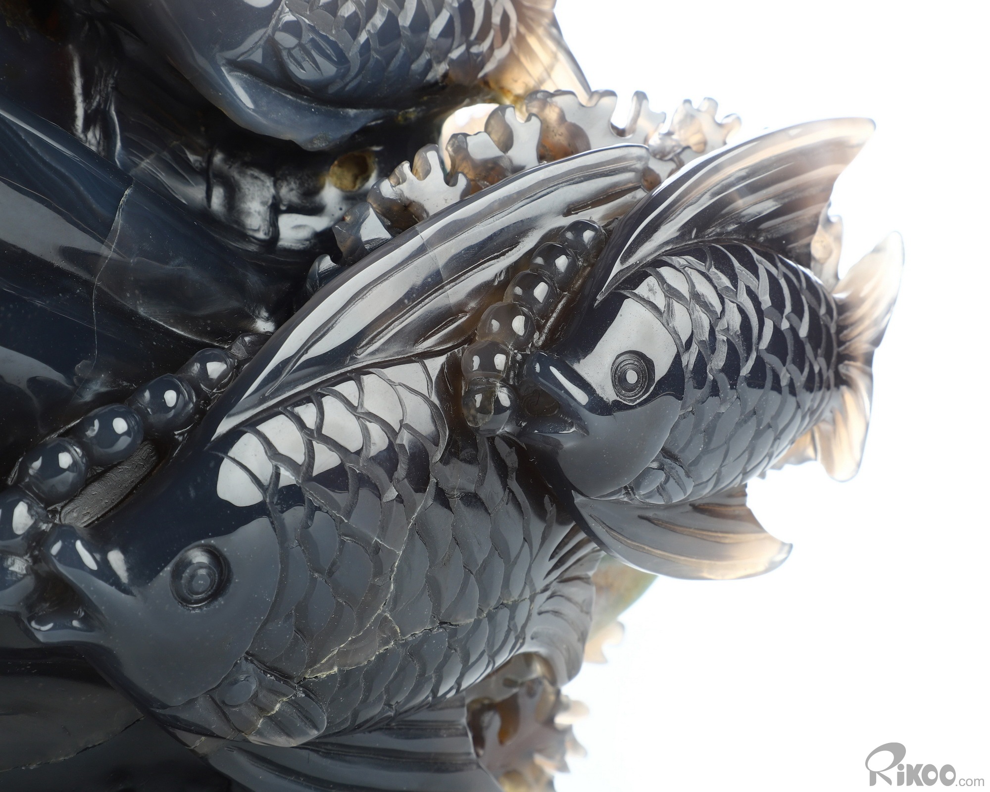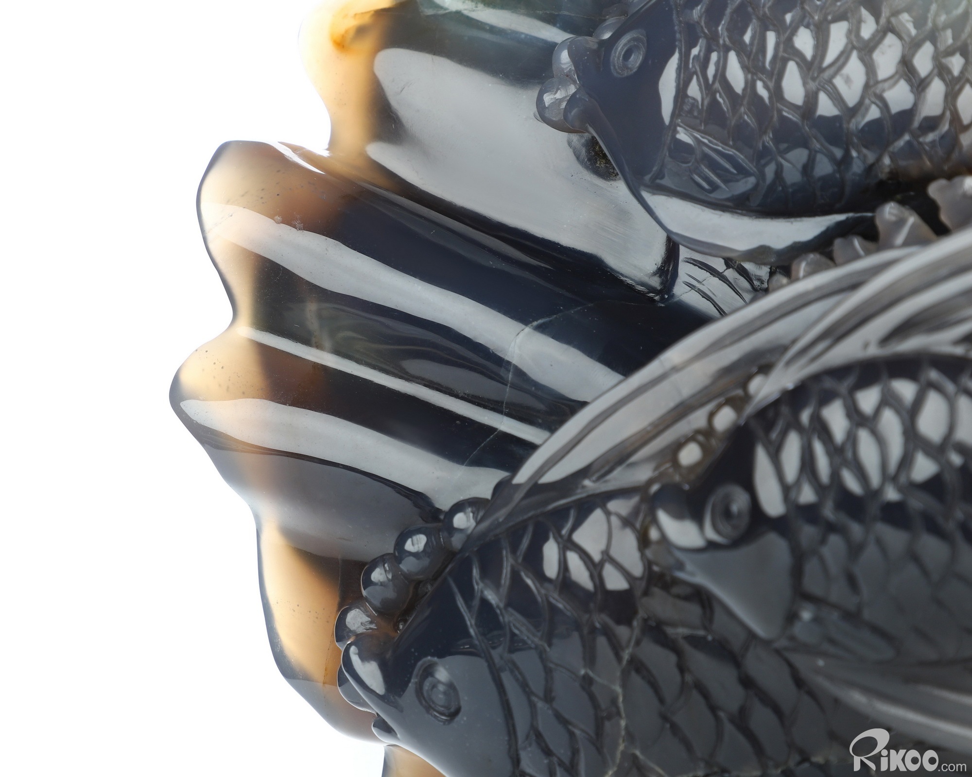 Titan 8.8" Agate Amethyst Geode Hand Carved Crystal Fish Sculpture, Crystal Healing