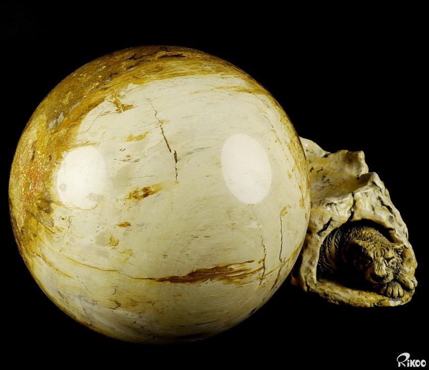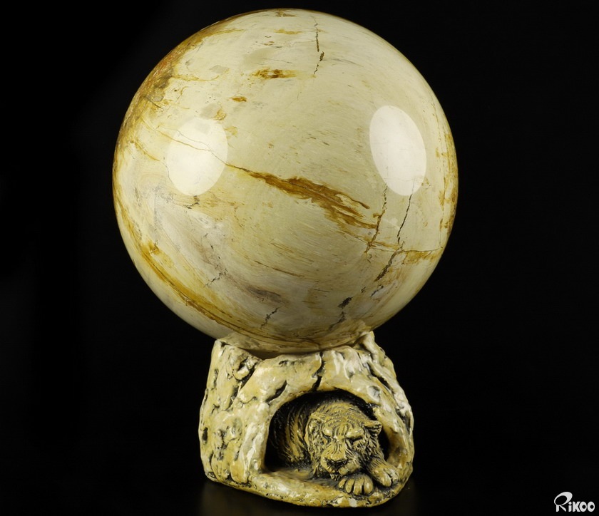 Giant 9.3" Petrified Wood Carved Crystal Sphere, Crystal Healing