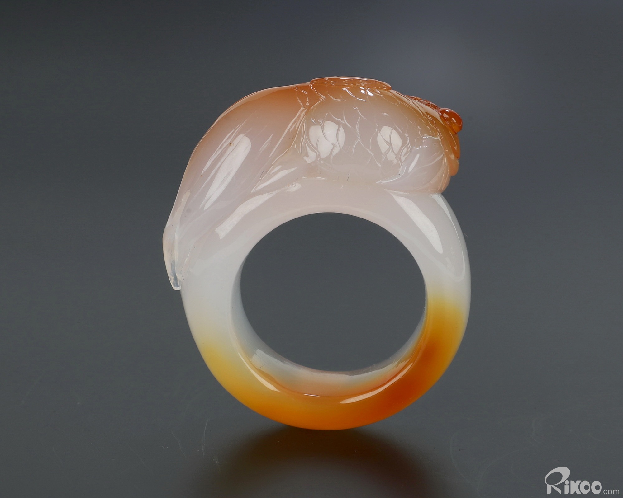 US Size 11# 1.6" Carnelian Hand Carved Crystal Goldfish Ring, Crystal Healing
