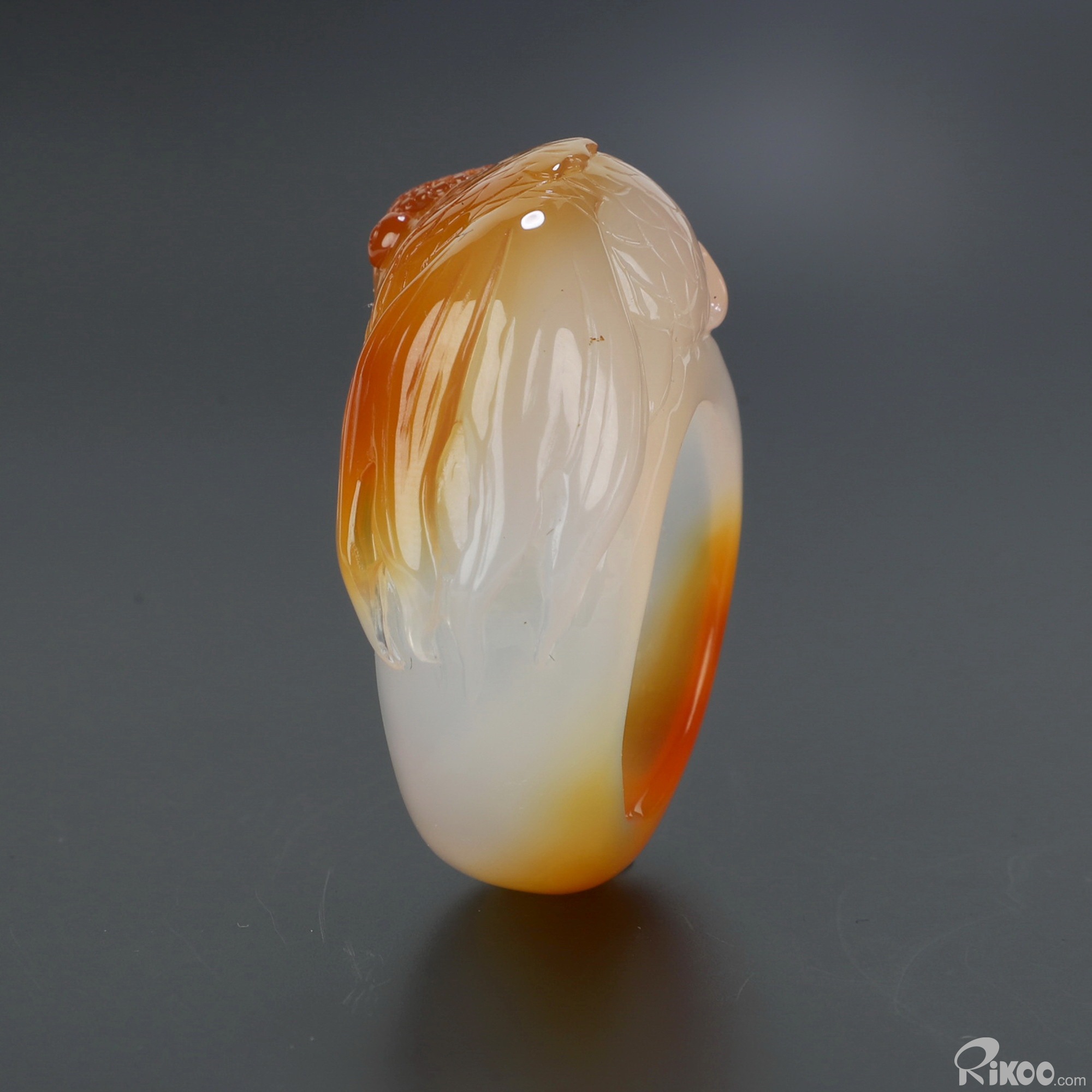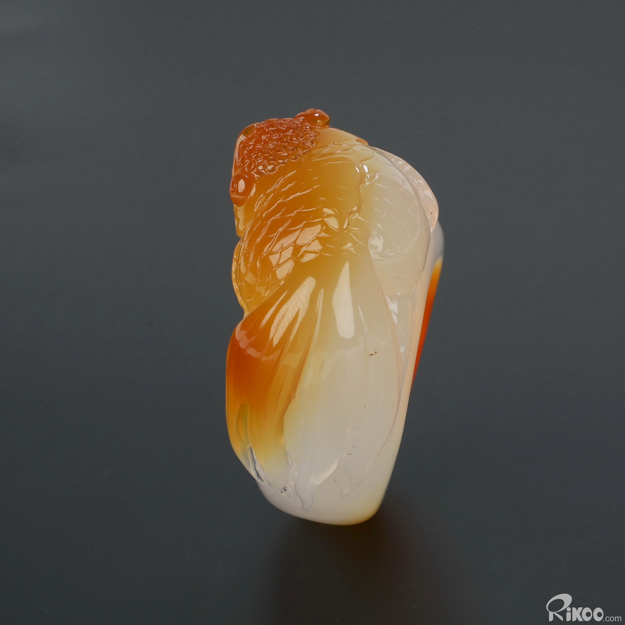 You are looking at a Carnelian sculpture. The sculpture is 1.6 inches long.