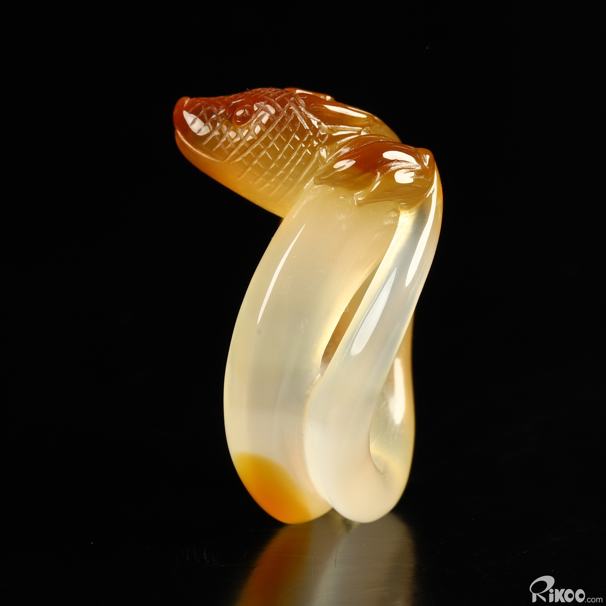 US Size 9# 1.5" Carnelian Hand Carved Crystal Snake Ring, Crystal Healing