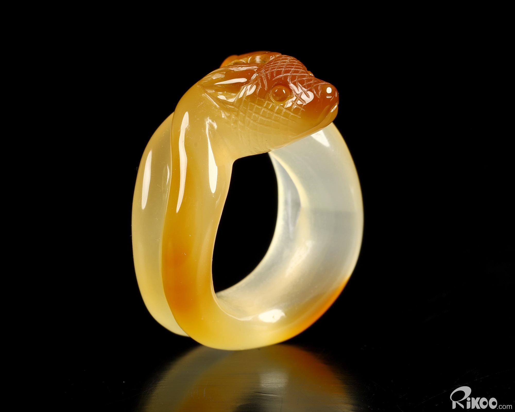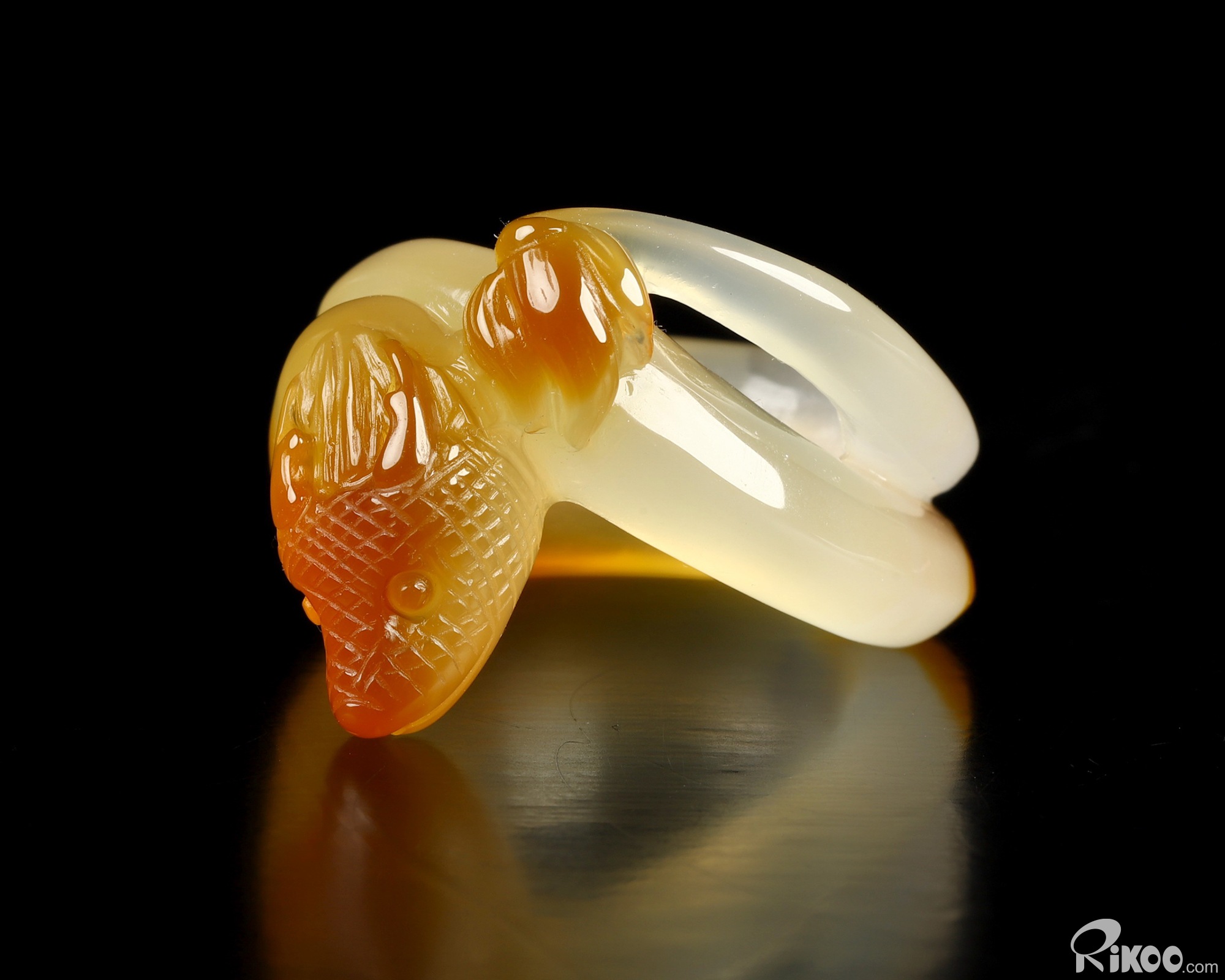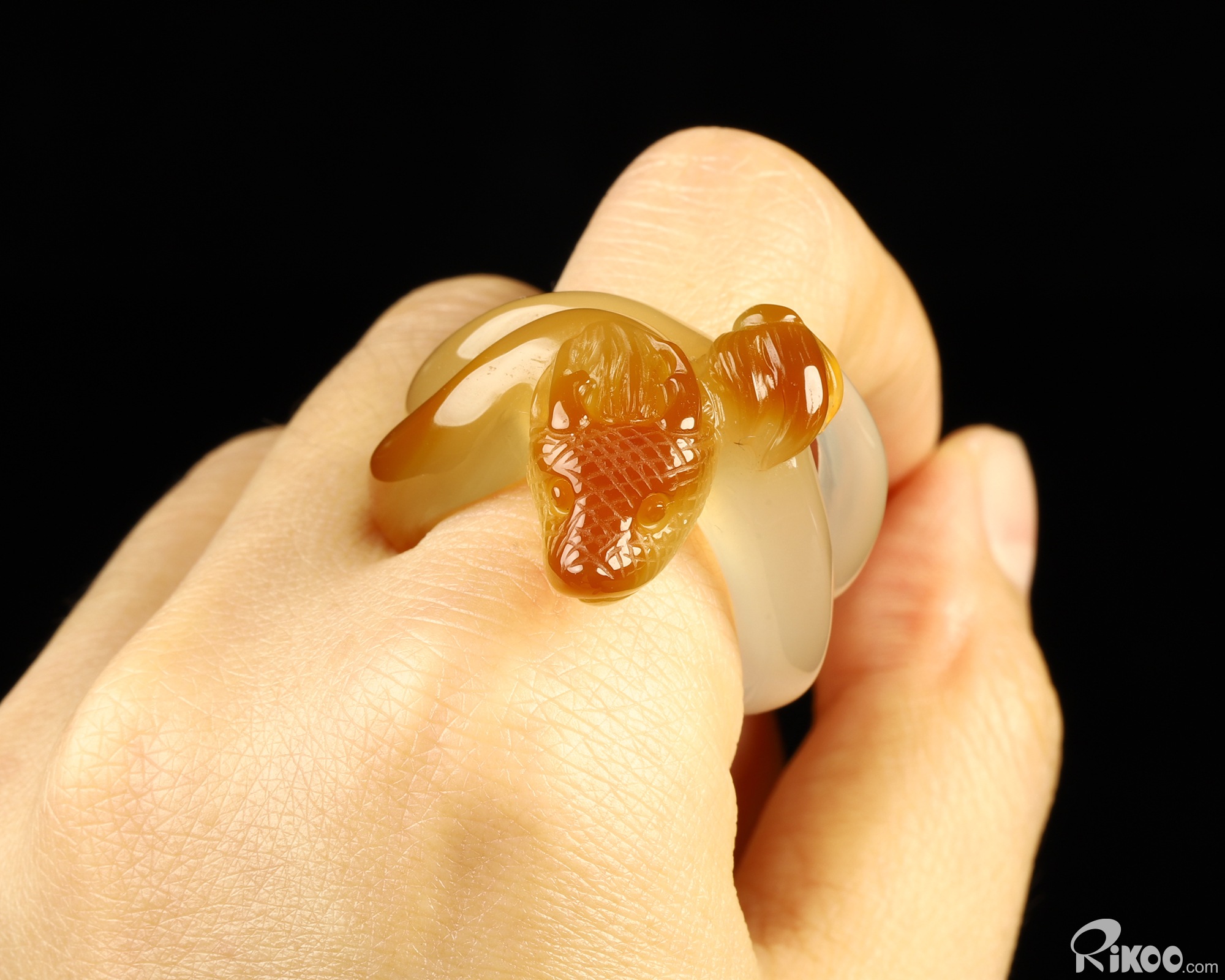 You are looking at a Carnelian ring. The sculpture is 1.5 inches long.
