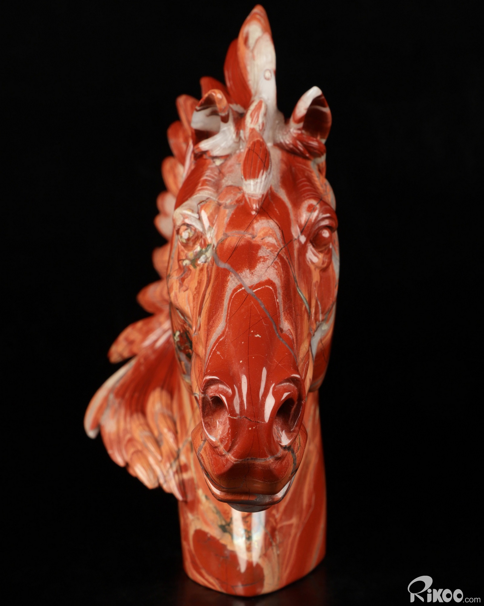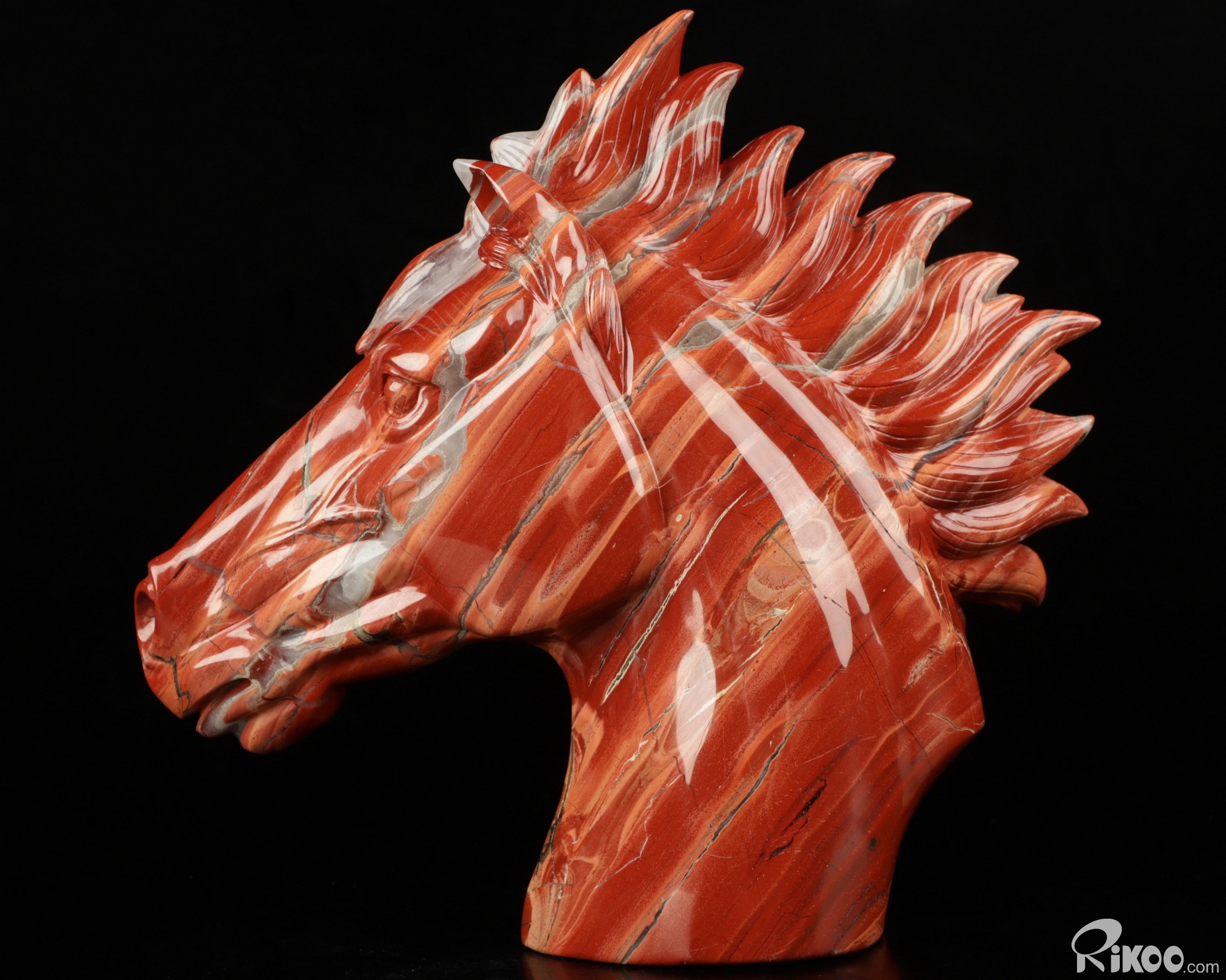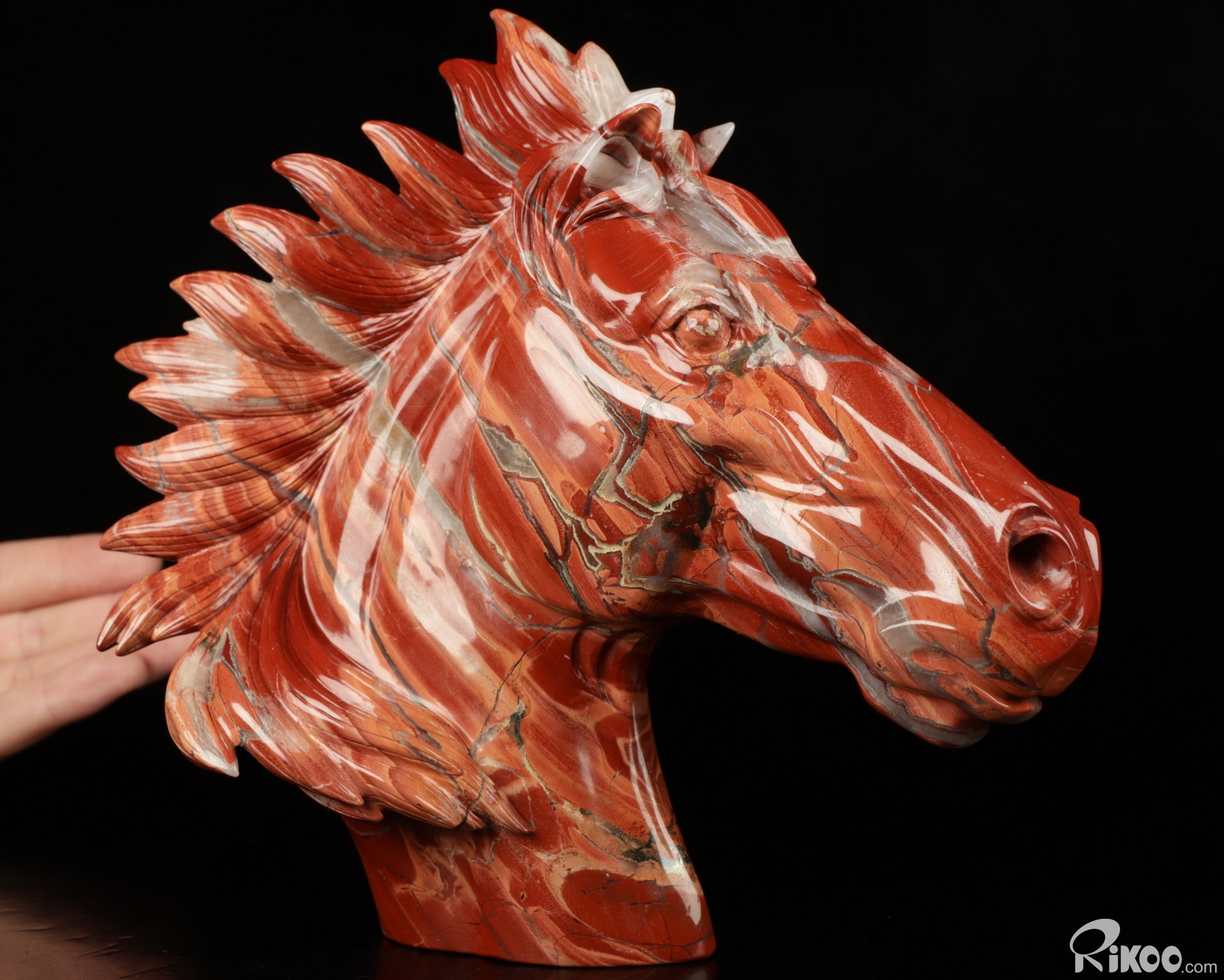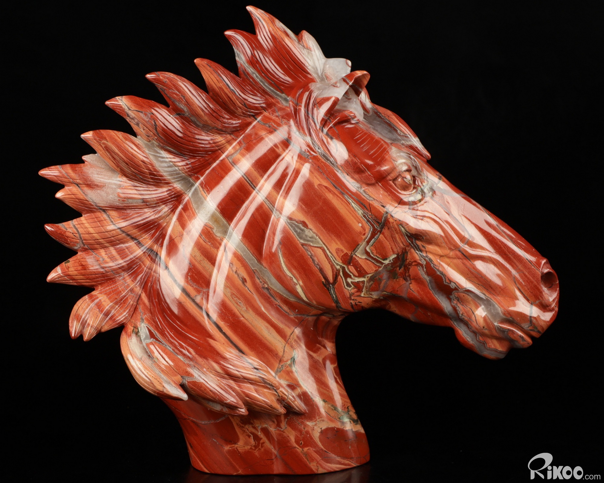 Unique 7.6" Red Jasper Carved Crystal Horse Head, Realistic