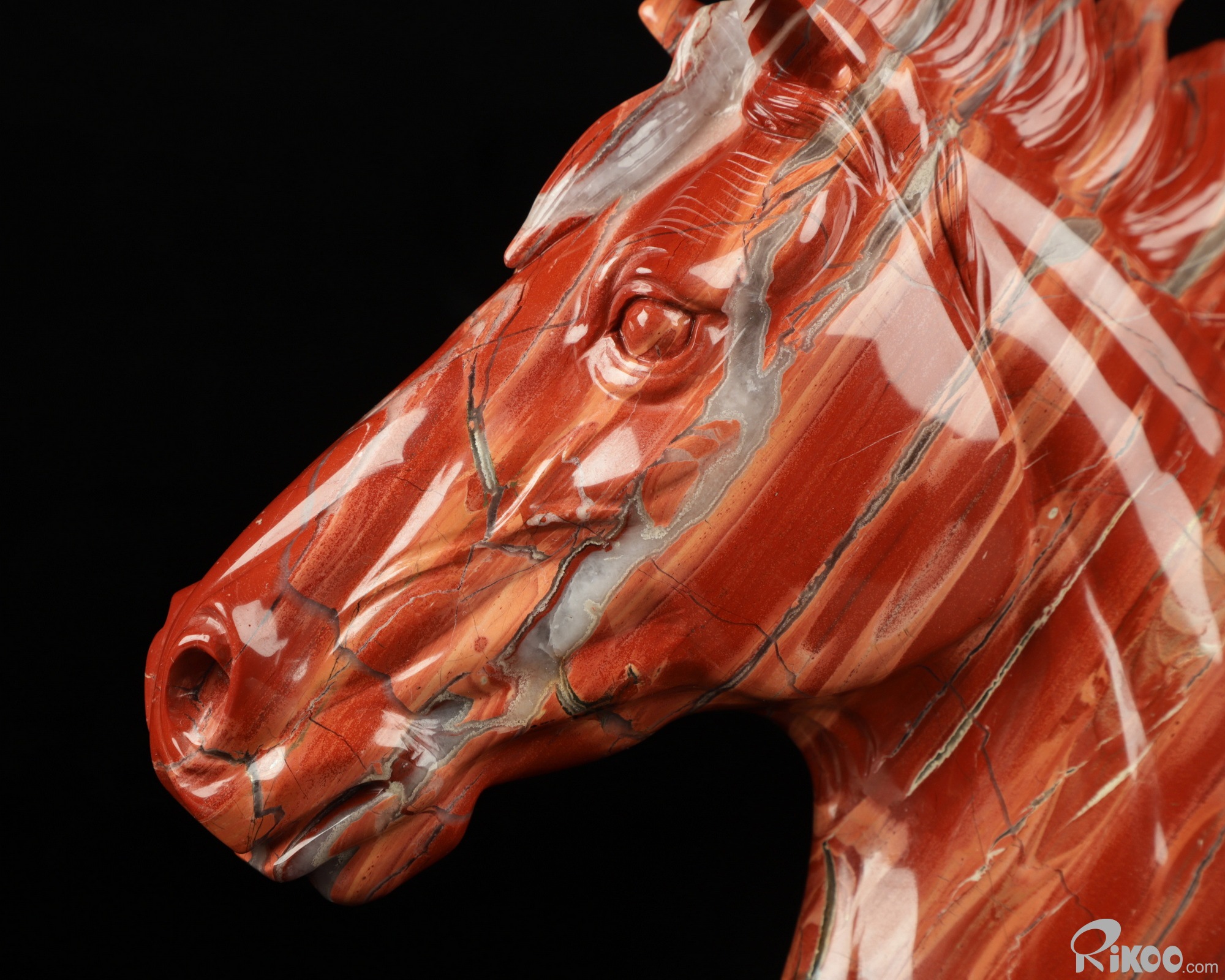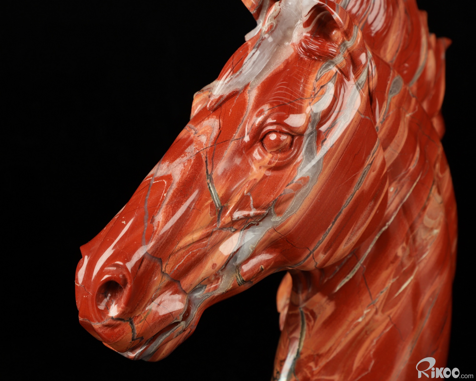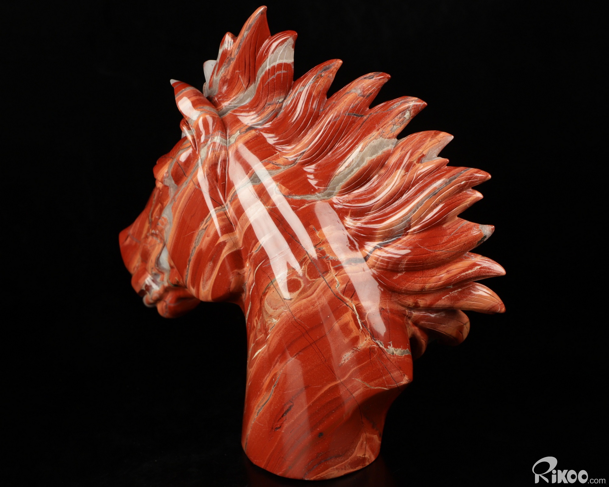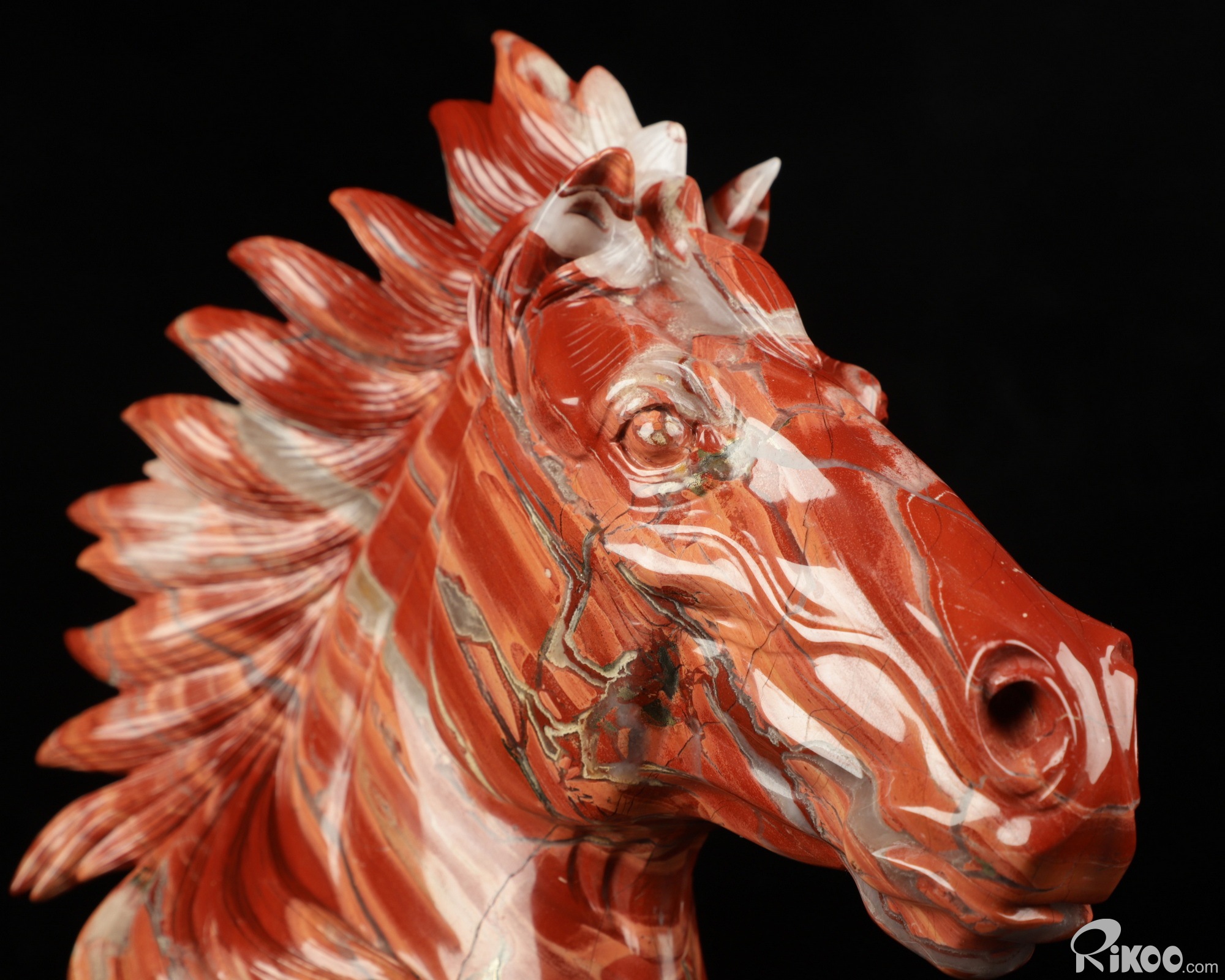 Unique 7.6" Red Jasper Carved Crystal Horse Head, Realistic