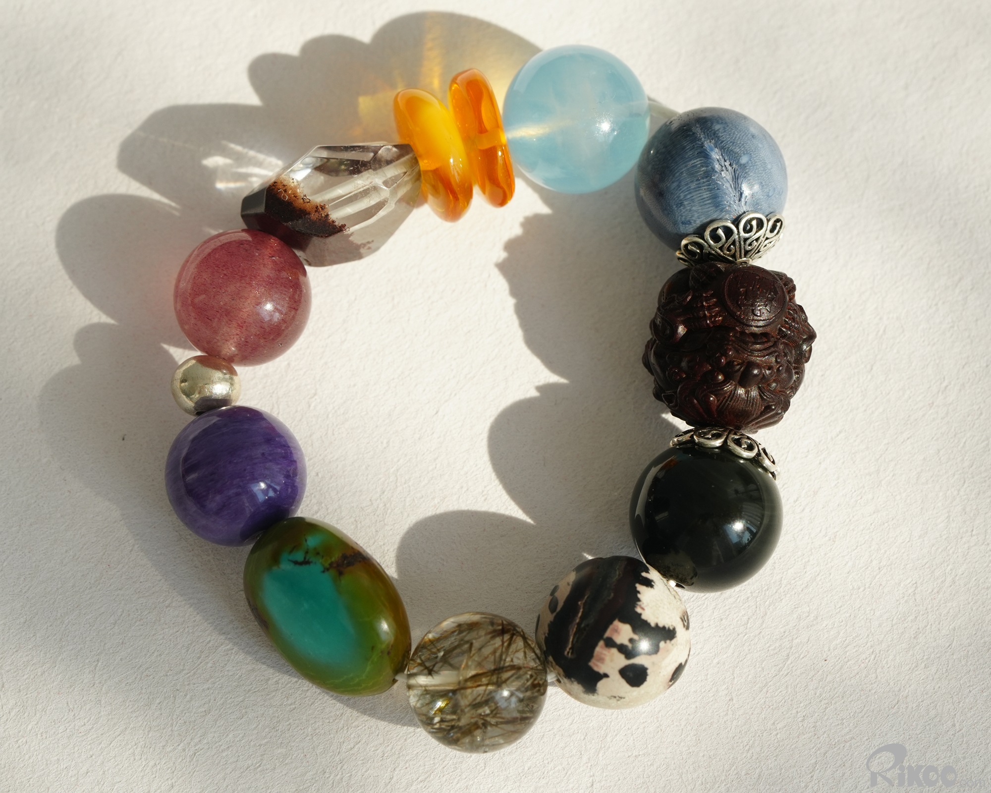 Various Gemstone 0.7" Aquamarine Charoite Crystal Bracelets, Crystal Healing