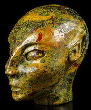 4.1" Orpiment Carved Fairy Elf Alien Crystal Skull Companion Sculpture, Crystal Healing