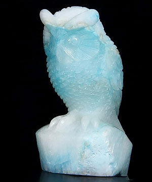HUGE 5.0" Blue Aragonite Carved Crystal Owl Sculpture